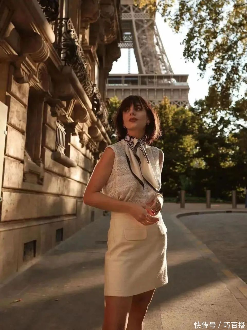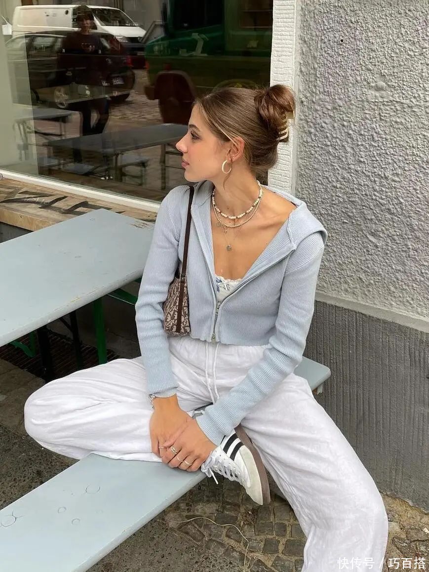 一条丝巾,既可以像博主一样选择系在颈间,松松垮垮的佩戴方式可以让它随风飘扬,自由舞动。