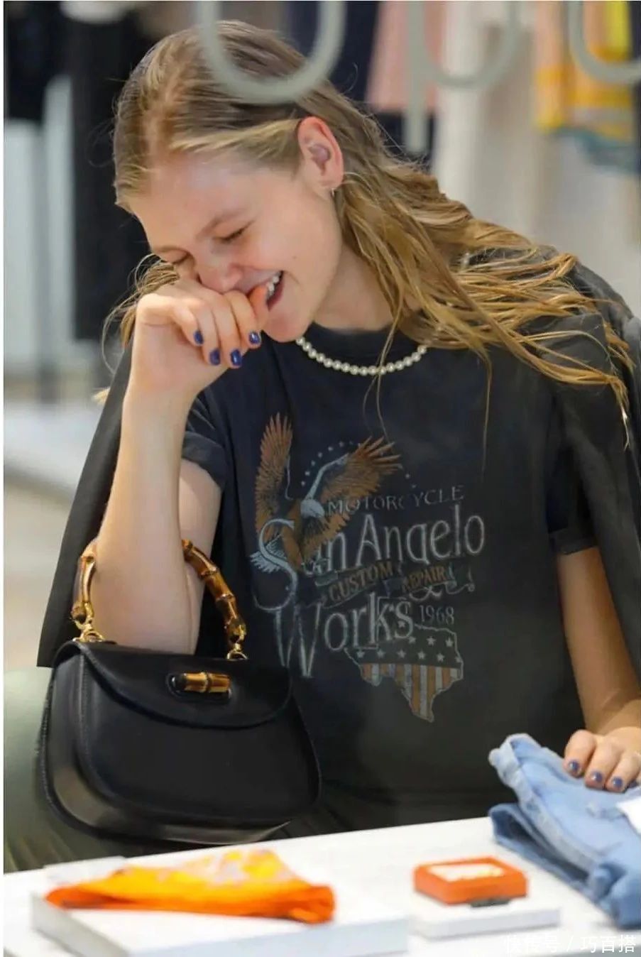 不同珍珠元素的配饰,佩戴效果也不同,珍珠项链是温柔低调谦逊又内敛的,珍珠手链是简约精致又能提升整体格调的,与T恤和牛仔外套同时出现,贼有辨识度。